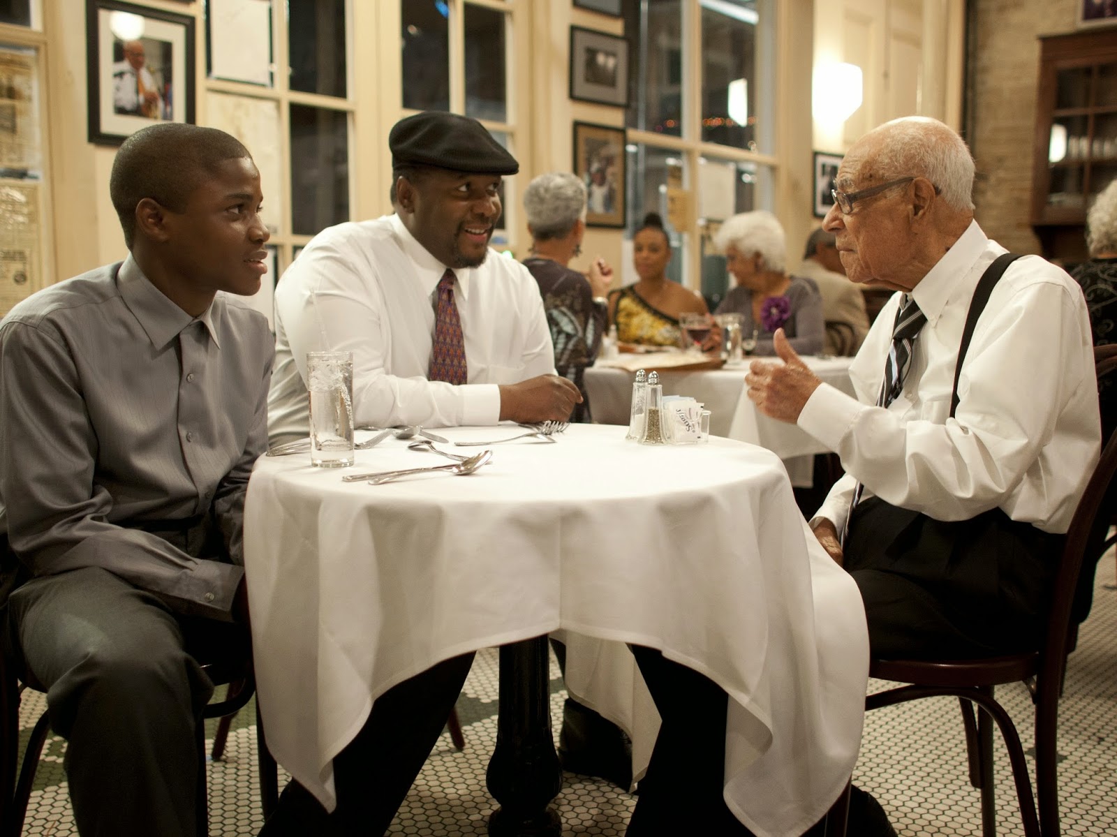 | Ferbos, en una escena de la serie «Treme» junto al personaje de Antoine Batiste. |