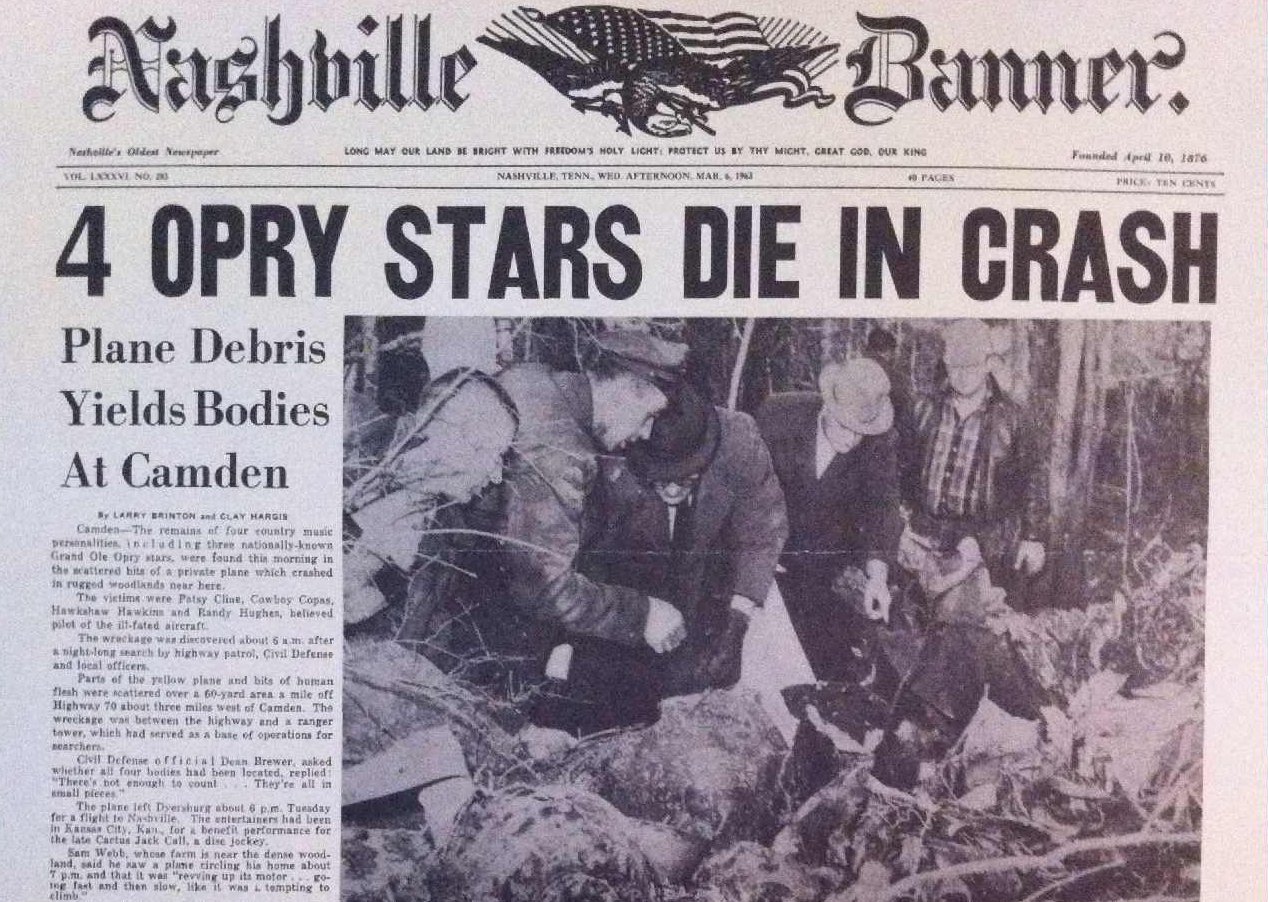 «Una avioneta, supuestamente pilotada por Randy Hughes, el mánager de una estrella del Grand Ole Opry, desapareció anoche durante su vuelo entre Kansas City y Nashville. El avión repostó en Dyersburg, al oeste de Tennessee. El responsable del aeropuerto, Bill Braese, identificó al piloto durante su aterrizaje para cargar combustible como Randy Hughes, un ejecutivo de Nashville, mánager personal de la estrella del Opry Patsy Cline. Se ha iniciado la búsqueda del aparato. Tres hombres y una mujer iban a bordo de la avioneta, supuestamente propiedad de Hughes. Un portavoz del Opry en Nashville ha confirmado que Hughes voló con algunas estrellas del Opry a Kansas City para participar en un concierto de homenaje el domingo. Algunos de los artistas se trasladaron en coche y otros en avión. Se cree que entre los que volaron se encontraban miss Cline, Hawkshaw Hawkins, Cowboy Copas y Billy Walker. La búsqueda terrestre se inició poco antes de medianoche, después de perderse todo contacto con el avión. La policía local y estatal y la patrulla civil del aire han sido alertadas…».
