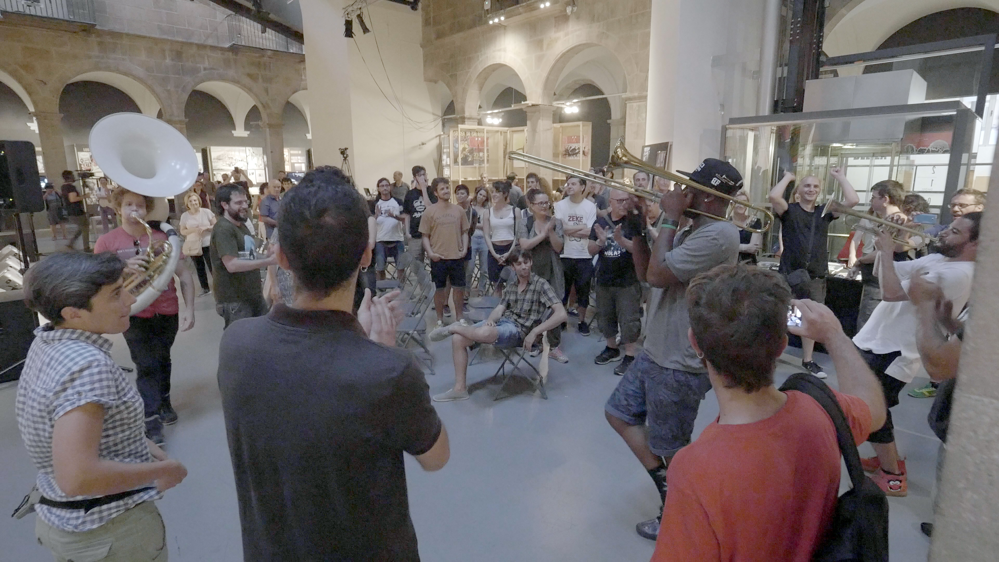 La tercera y última de las charlas, el 29 de junio, fue New Orleans Is Beltza. La música de New Orleans, de l’esclavisme a l’off-beat, y es la que tuve el placer de moderar. Me reuní con los músicos neorleanos el día anterior –Jonathan Freilich (productor y guitarrista de Irun Meets New Orleans; cofundador de The New Orleans Klezmer All-Star), Ashlin Parker (trompeta; componente de The New Orleans Jazz Orchestra), Devon Taylor (tuba; colaborador de la Preservation Hall Jazz Band), Chrishira Perrier (cantante), Paul Thibodeaux (batería; creador de la Thibodeaux School Of Music) y Robert Walker (trombón; integrante de Free Spirit Brass Band, Lagniappe Brass Band y Street Legendz Brass Band)– y les mostré un guion de los temas que pretendía tratar.