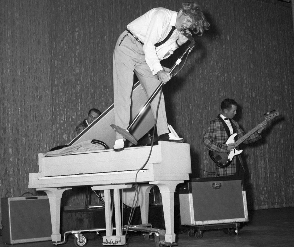 David Maho (guitarrista y cantante de blues y country): Actitud, descaro, determinación, pasión… Y, sobre todo, y nunca mejor dicho, por eso que le daba de prender pianos, fuego. En los cincuenta, a nivel personal y musical, las reglas se la sudaban. Un artistazo versátil a más no poder.