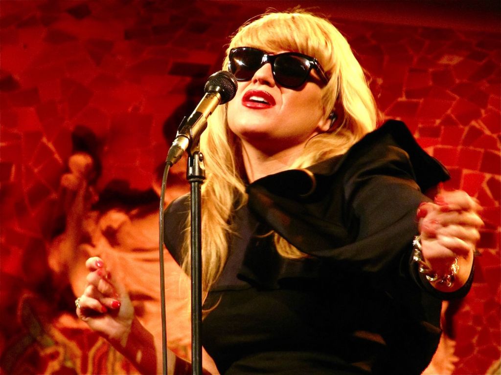 Enfundada en un ceñido vestido negro, larga melena rubia y con las secuelas de su desafortunado accidente –gafas oscuras y bastón–, la figura de la cantante norteamericana irradiaba una extraña sensualidad, reforzada por su voz susurrante y sus movimientos gatunos.
