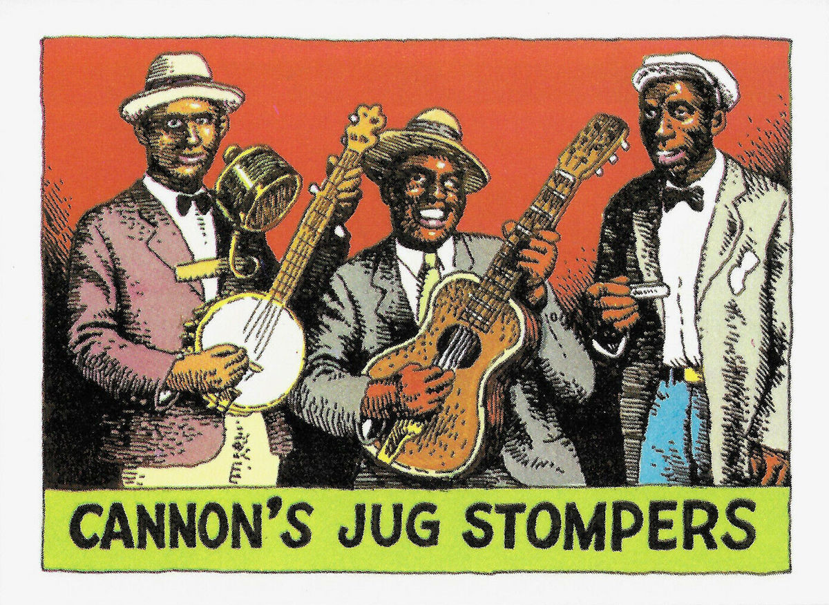 Entre 1928 y 1932, y con el modelo creado por Will Shade como referente, aparecieron otras jug bands en Memphis: las más conocidas fueron la Jack Kelly’s South Memphis Jug Band (durante muchos años la atracción cotidiana del lujoso hotel Peabody de esa ciudad) y los Cannon’s Jug Stompers, formación en la que militaba Noah Lewis (el de la derecha en la ilustración de Robert Crumb).