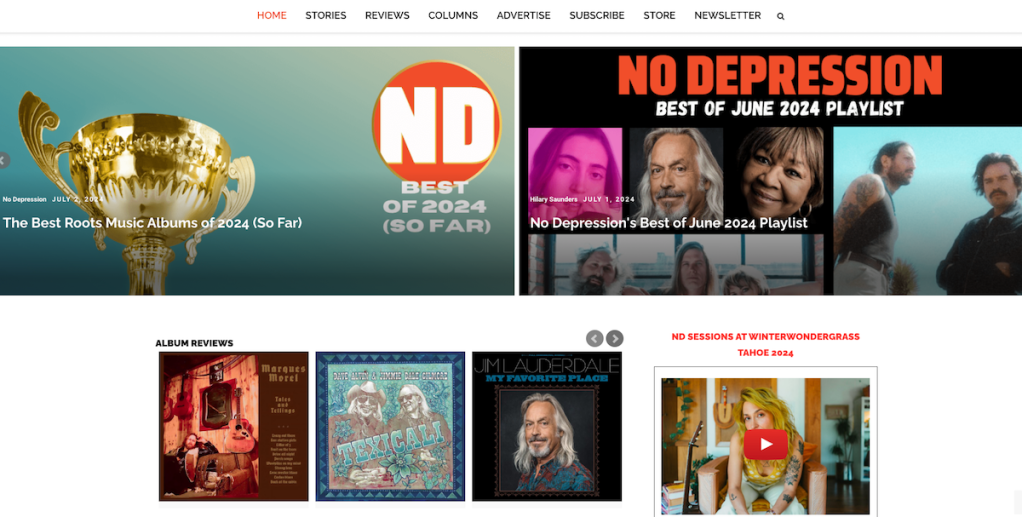 En la web de No Depression podemos apreciar la variedad de sus contenidos